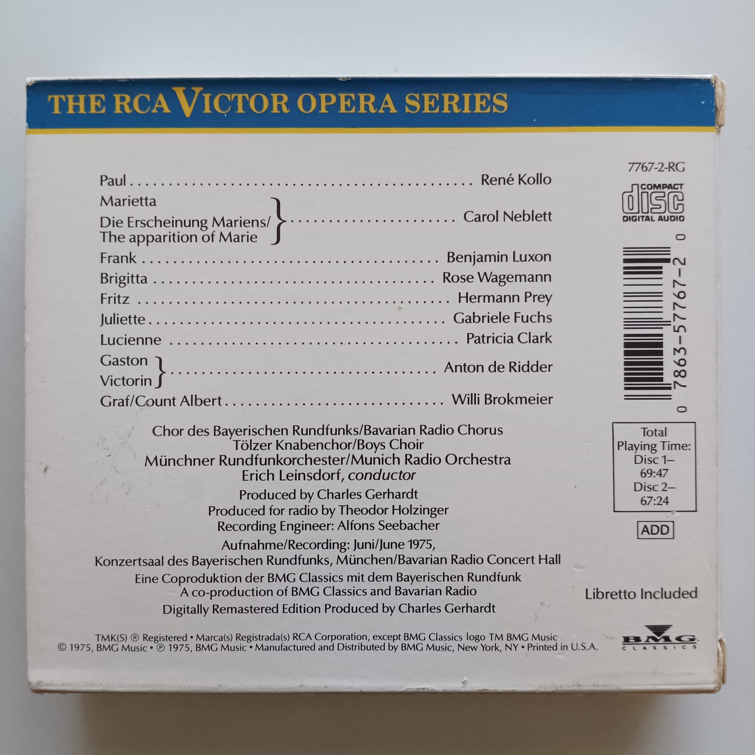 Box CD Korngold – Die Tote Stadt – Reg: Leinsdorf – Importado (2CDs)
