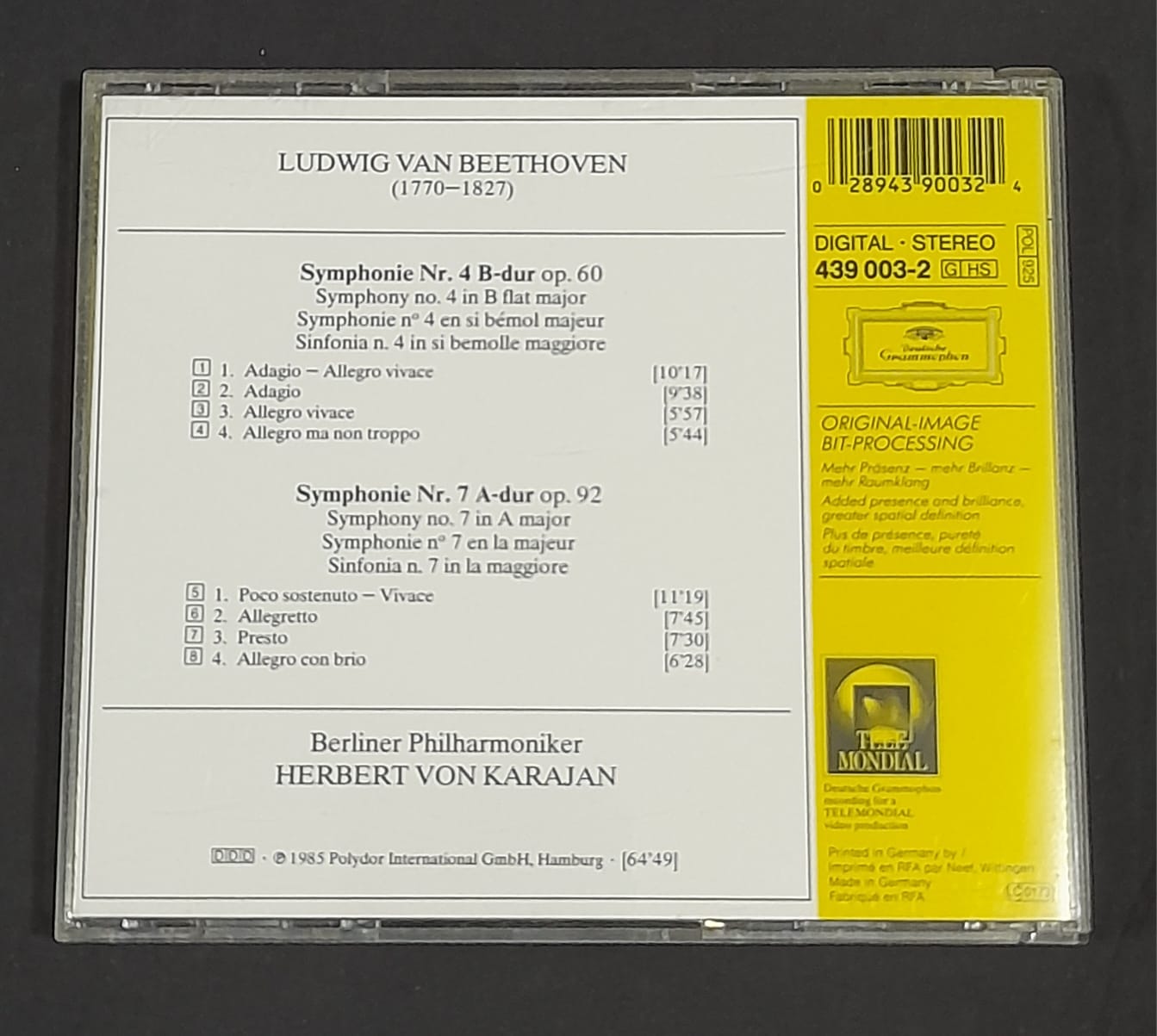 CD Beethoven : Symphonien Nos. 4 & 7 – Reg: Herbert Von Karajan