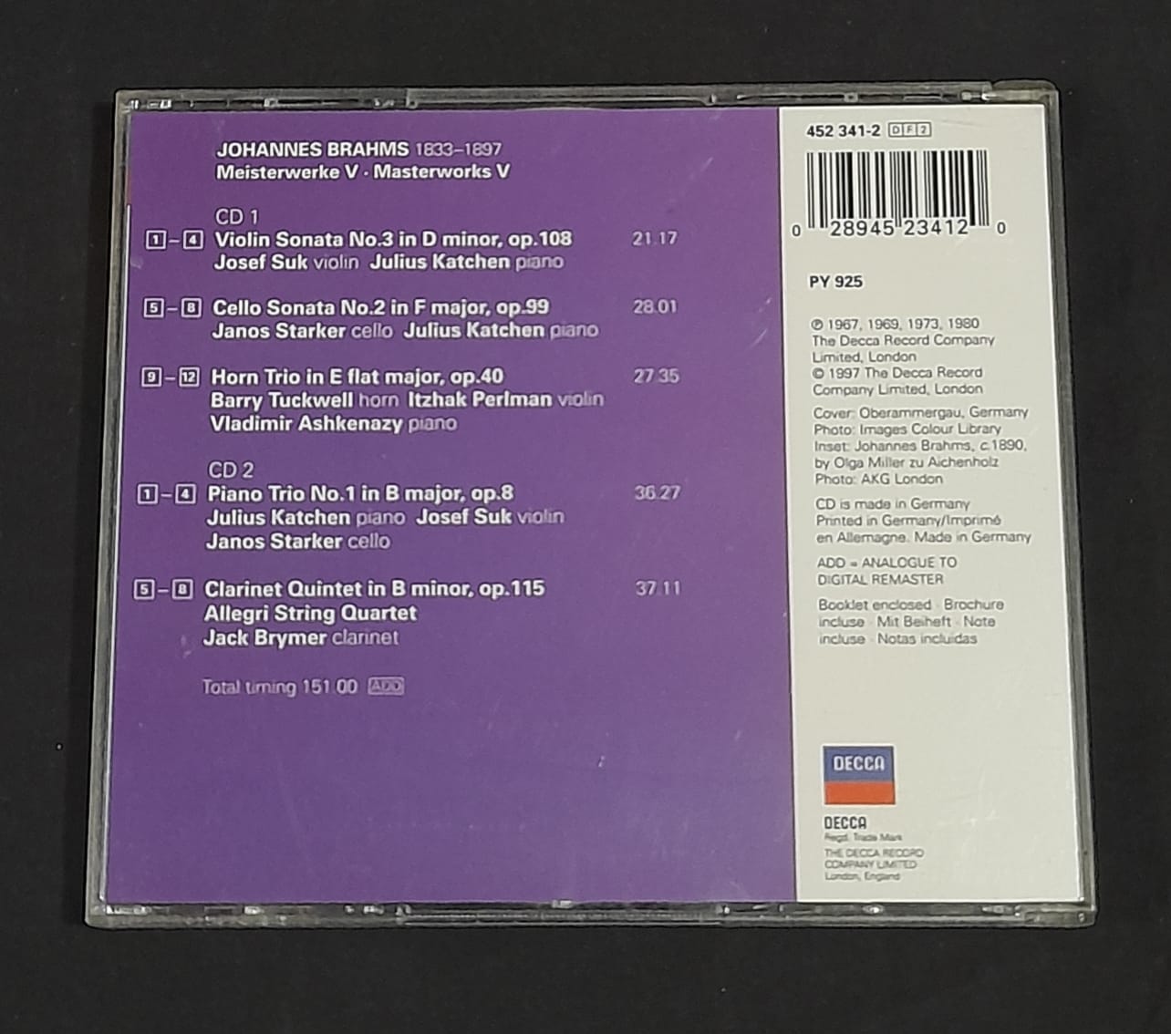 Álbum: Clarinet Quintet - Piano Trio No.1 - Horn Trio - Violin Sonata No.1 - Cello Sonata No.2