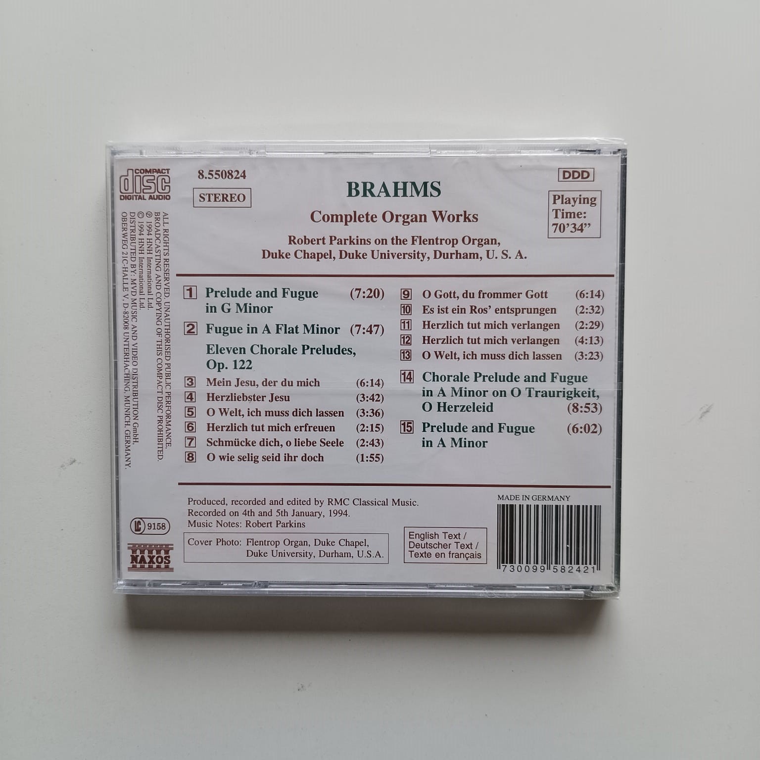 CD Brahms – Complete Organ Works – Robert Parkins – Importado Lacrado
