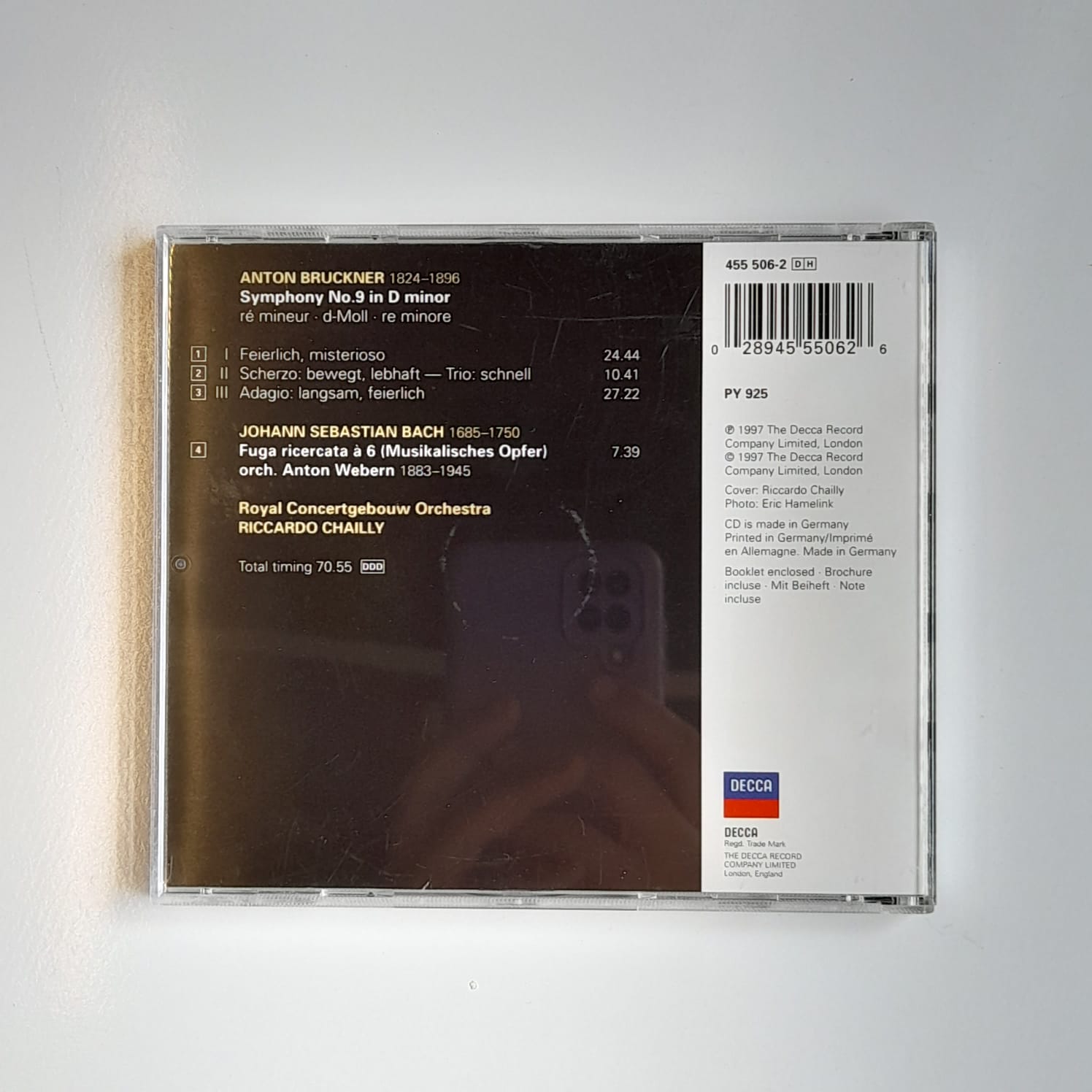 CD Bruckner – Symphony No 9 / Bach – Fuga Ricercata – Reg: Riccardo Chailly – Importado
