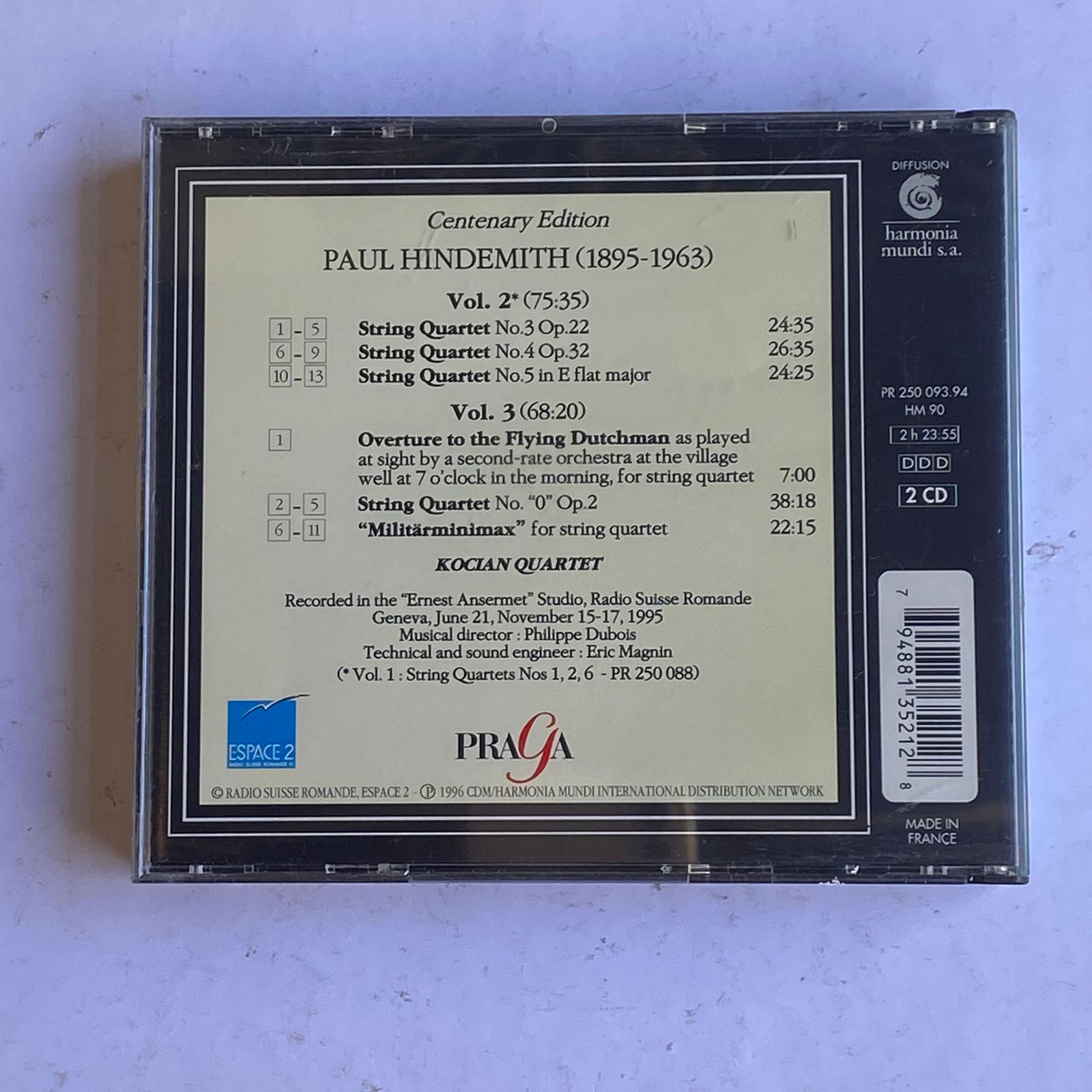 CD Duplo Hindemith – String Quartets N° ”0”, 3, 4 & 5 – reg: Kocian Quartet – Importado
