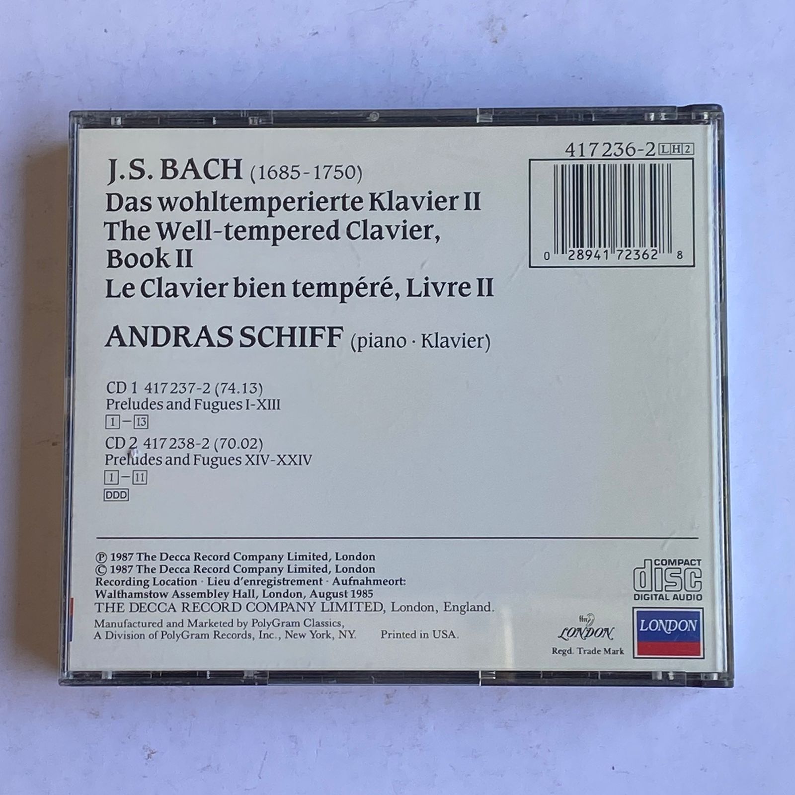 CD Duplo J.S Bach – The Well-Tempered Clavier, Book II – Andreas Schiff – Importado