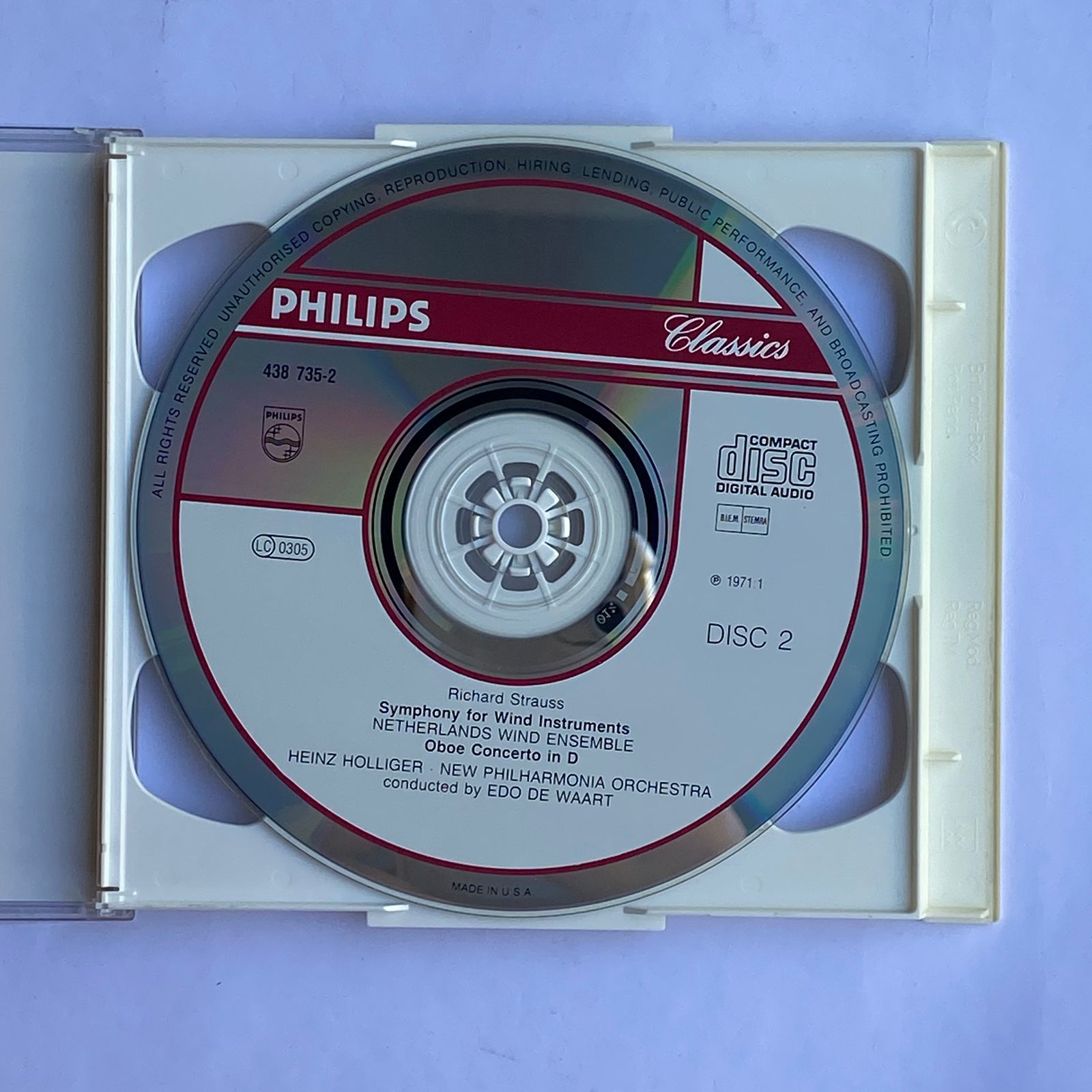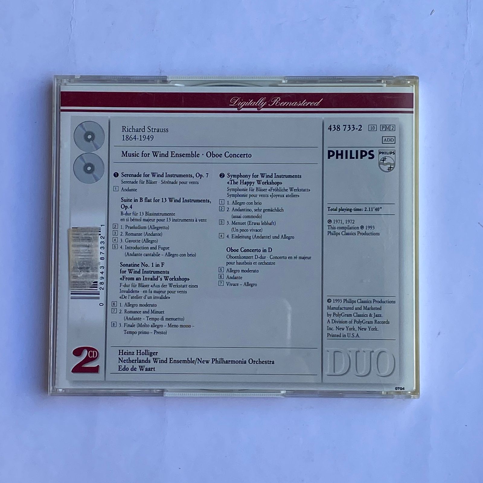CD Duplo Strauss – Music for Wind Ensemble – Reg: Holliger / Waart – Importado