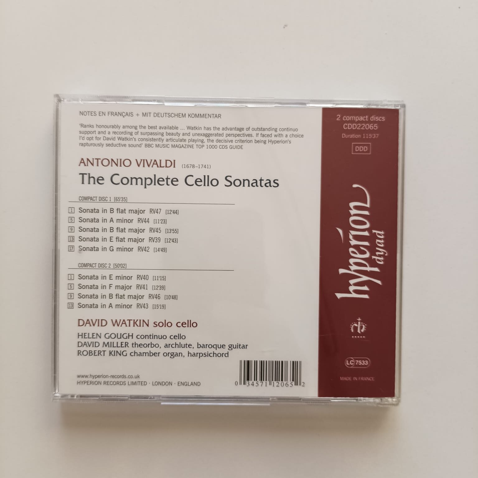 CD Duplo Vivaldi – The Complete Cello Sonatas – David Watkin, Cello – Importado