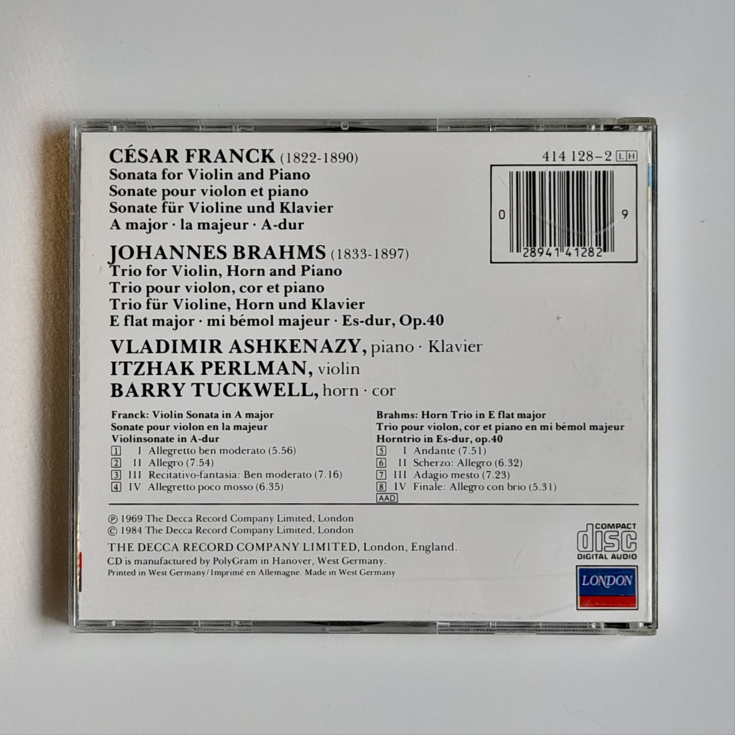 Artista: Barry Tuckwell, Cesar Franck, Itzhak Perlman, Johannes Brahms, Vladmir Ashkenazy