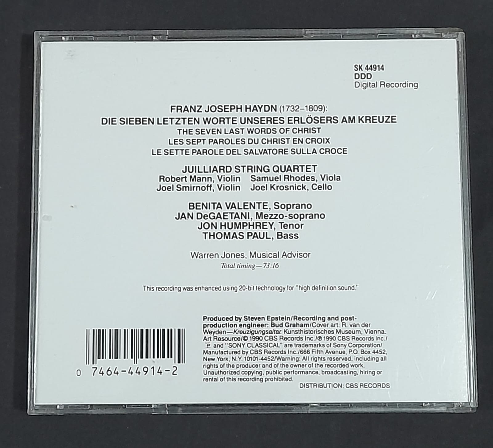 CD Haydn : Seven Last Words Of Christ – The Juilliard String Quartet