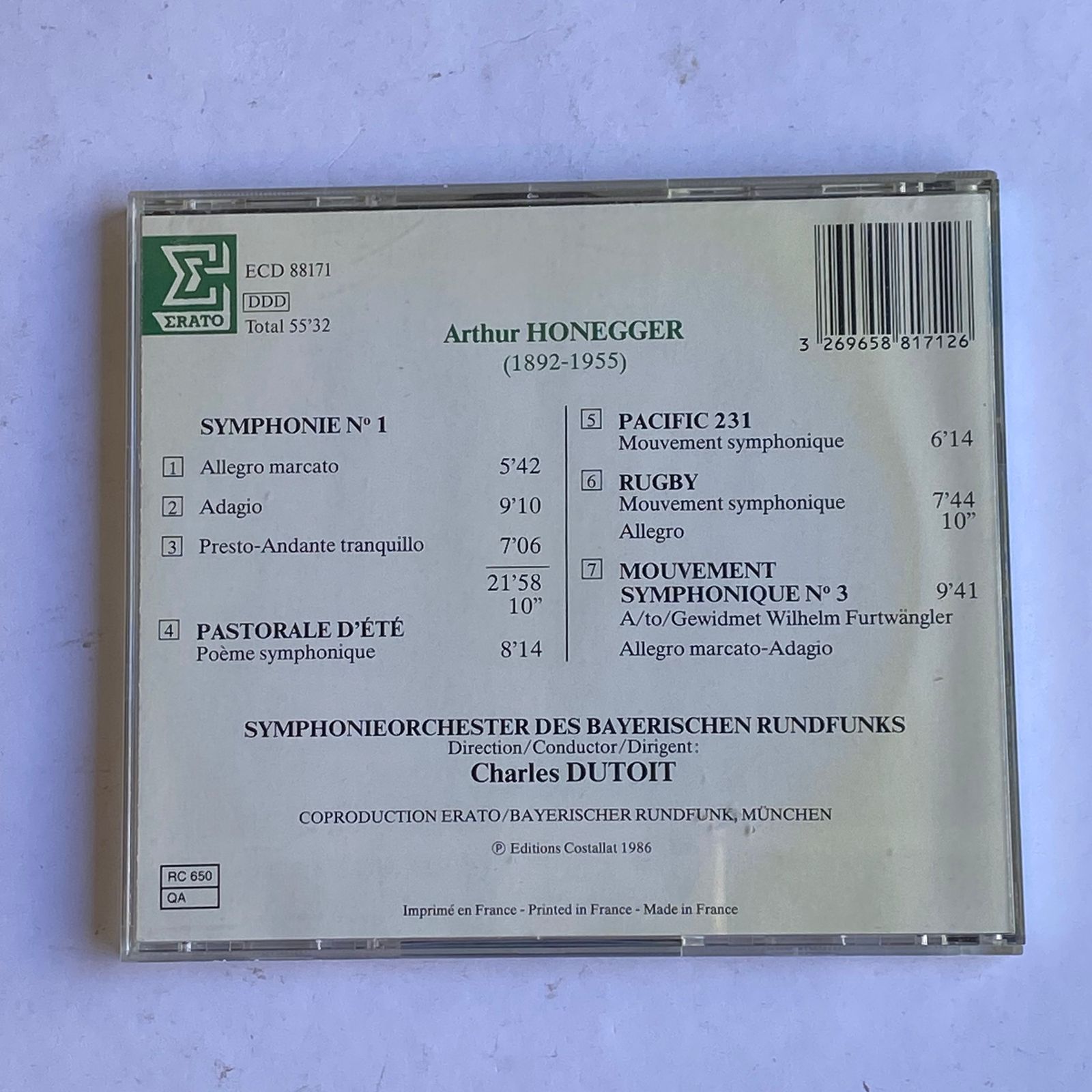 CD Honegger – Symphonie N°1 – Reg: Charles Dutoit – Importado