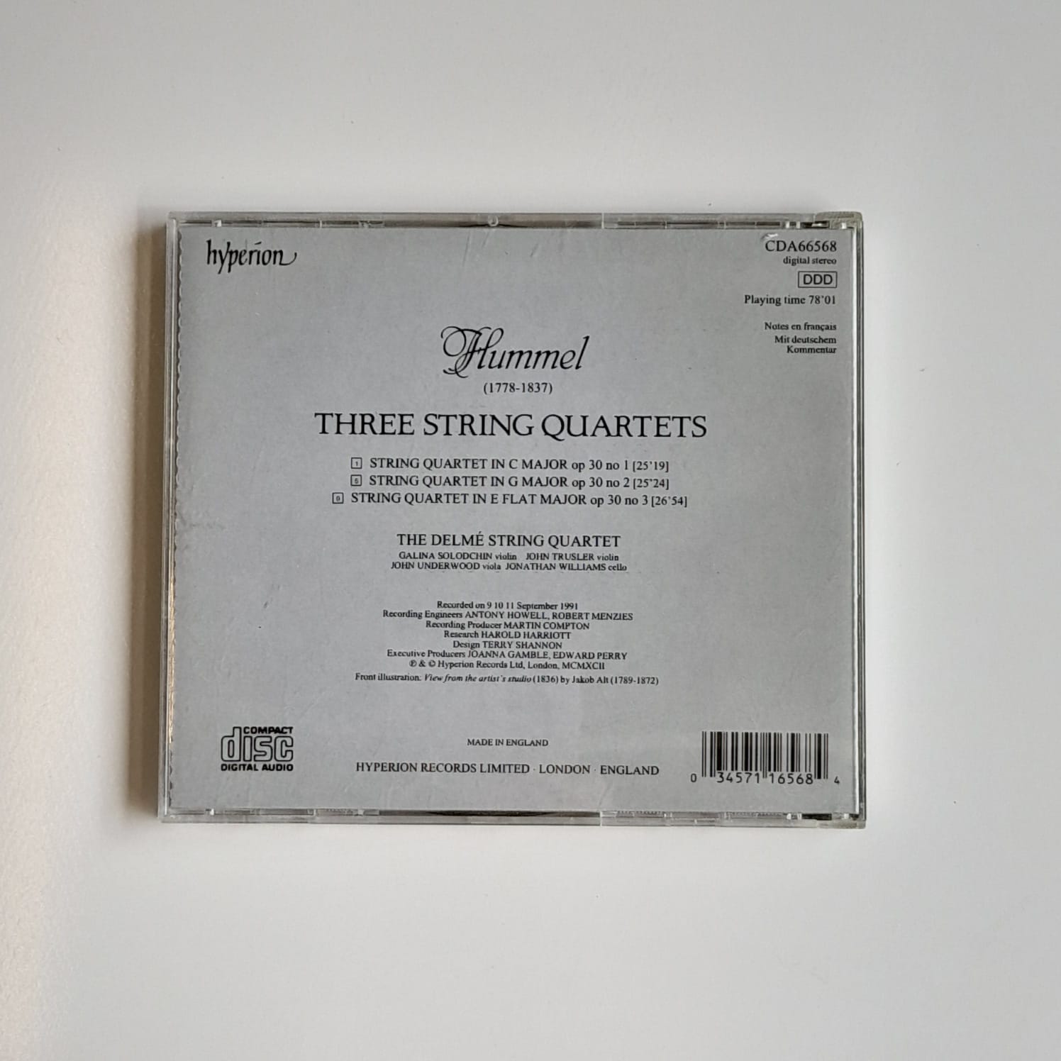 CD Hummel – Three String Quartets Op 30 – Delmé Quartet – Importado