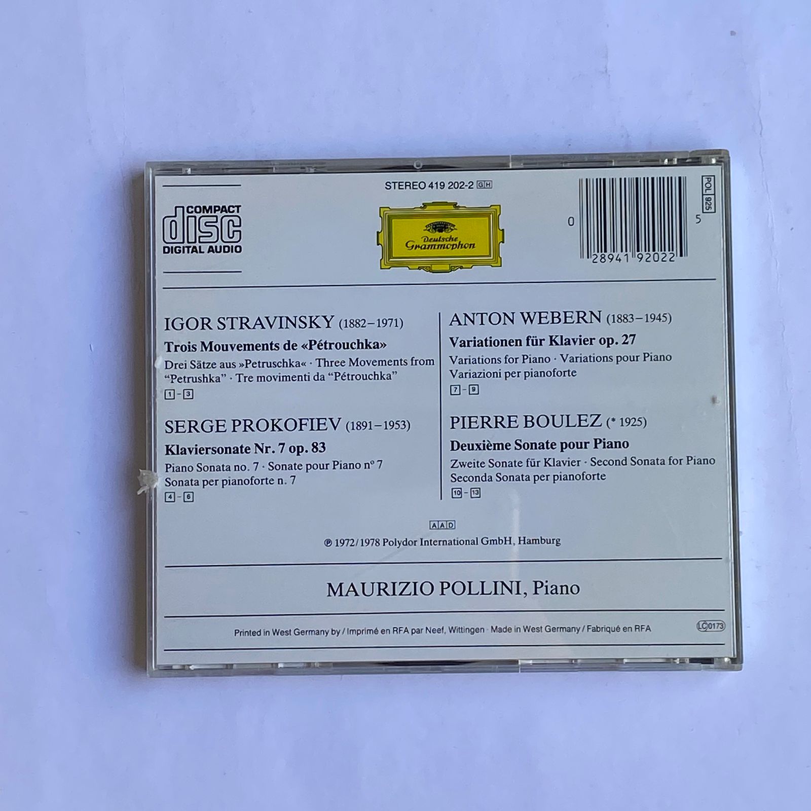 Artista: Anton Webern, Igor Stravinsky, Maurizio Pollini, Pierre Boulez, Serge Prokofiev
