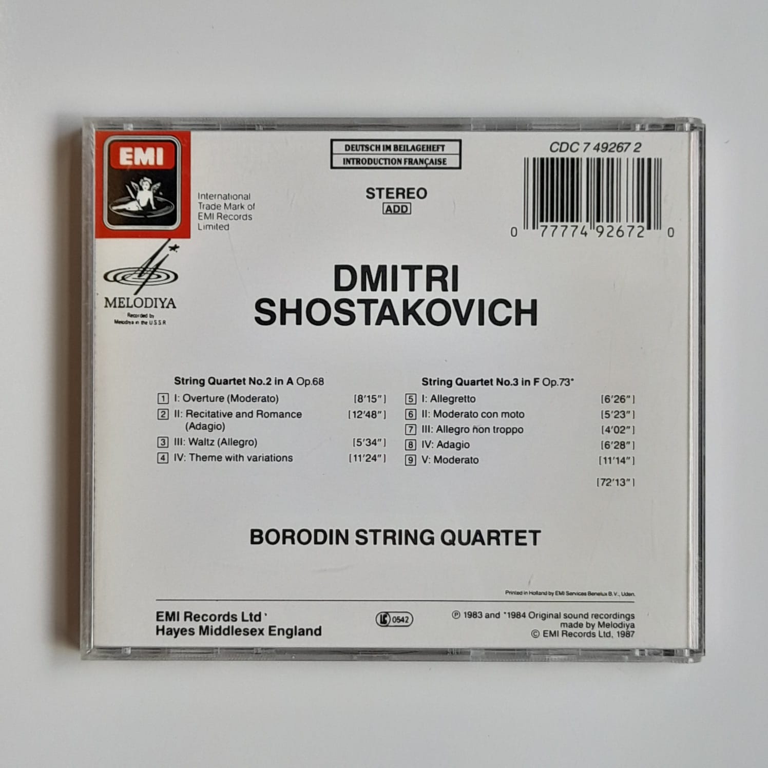 CD Shostakovich – String Quartets Nos. 2 & 3 Reg: Borodin String Quartet – Importado