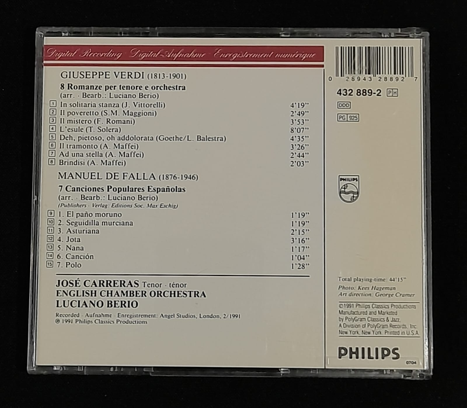 CD Verdi – Falla : Songs – Reg: Luciano Berio – Importado