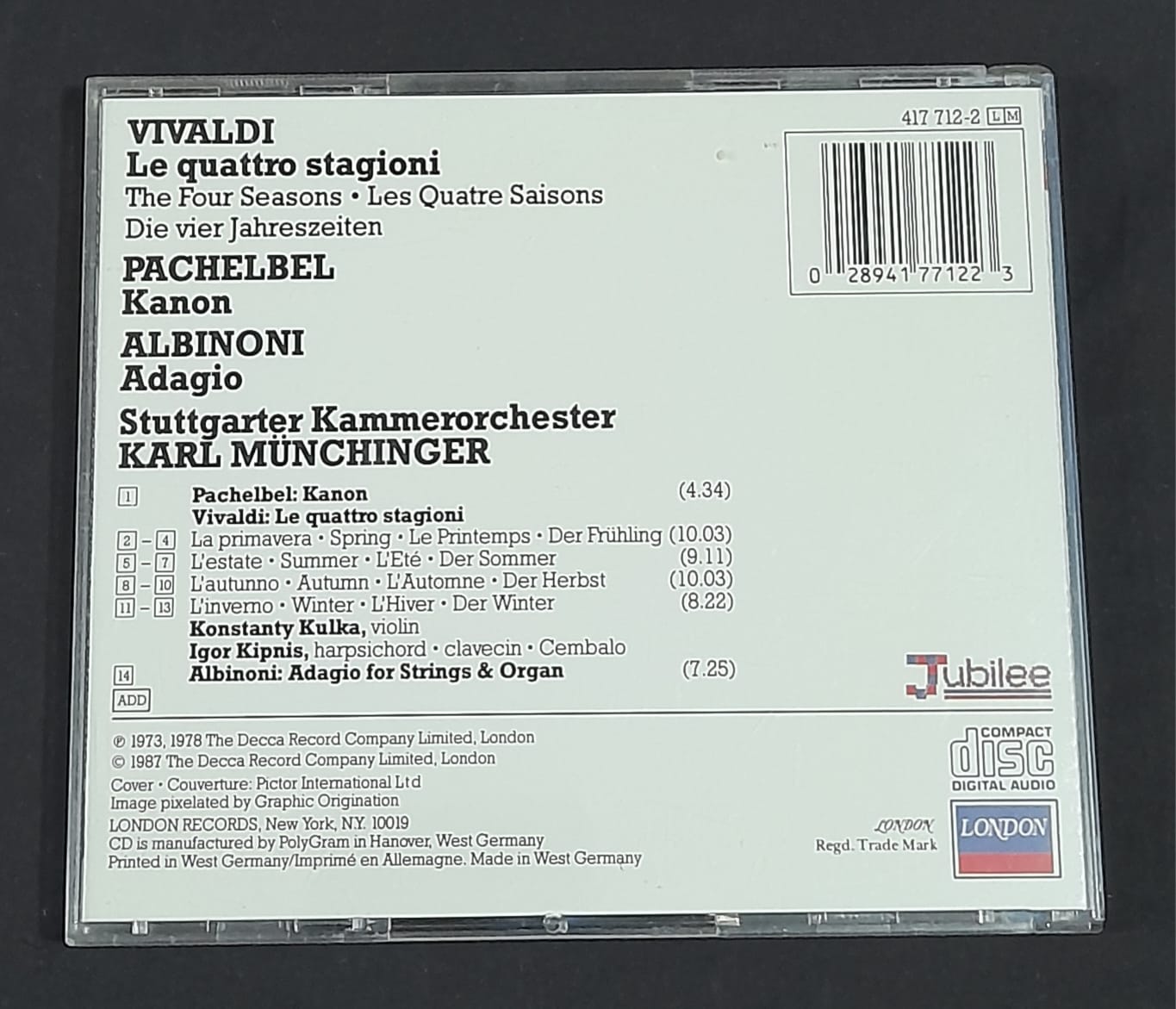 CD Vivaldi : Le Quattro Stagioni – Reg: Karl Münchinger