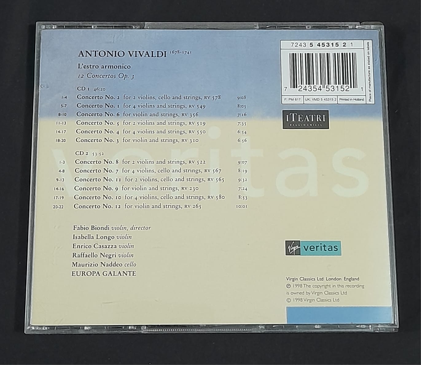 Álbum: L'estro Armonico 12 Concertos Op.3