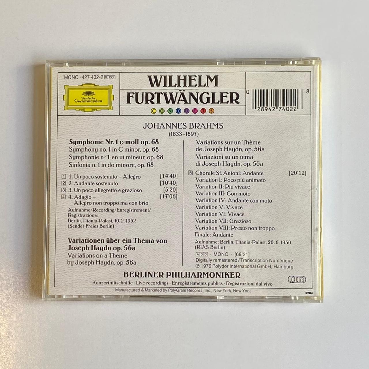 CD Wilhelm Furtwangler – Symphonie N° 1 – Brahms / Haydn – Importado