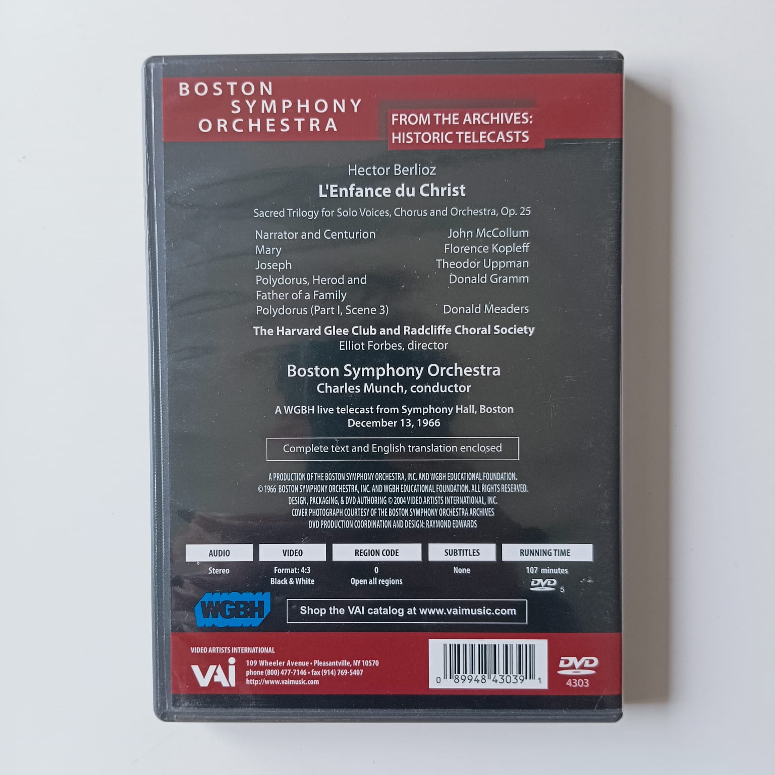 DVD Berlioz – L’Enfance du Christ – Reg: Charles Munch – Importado