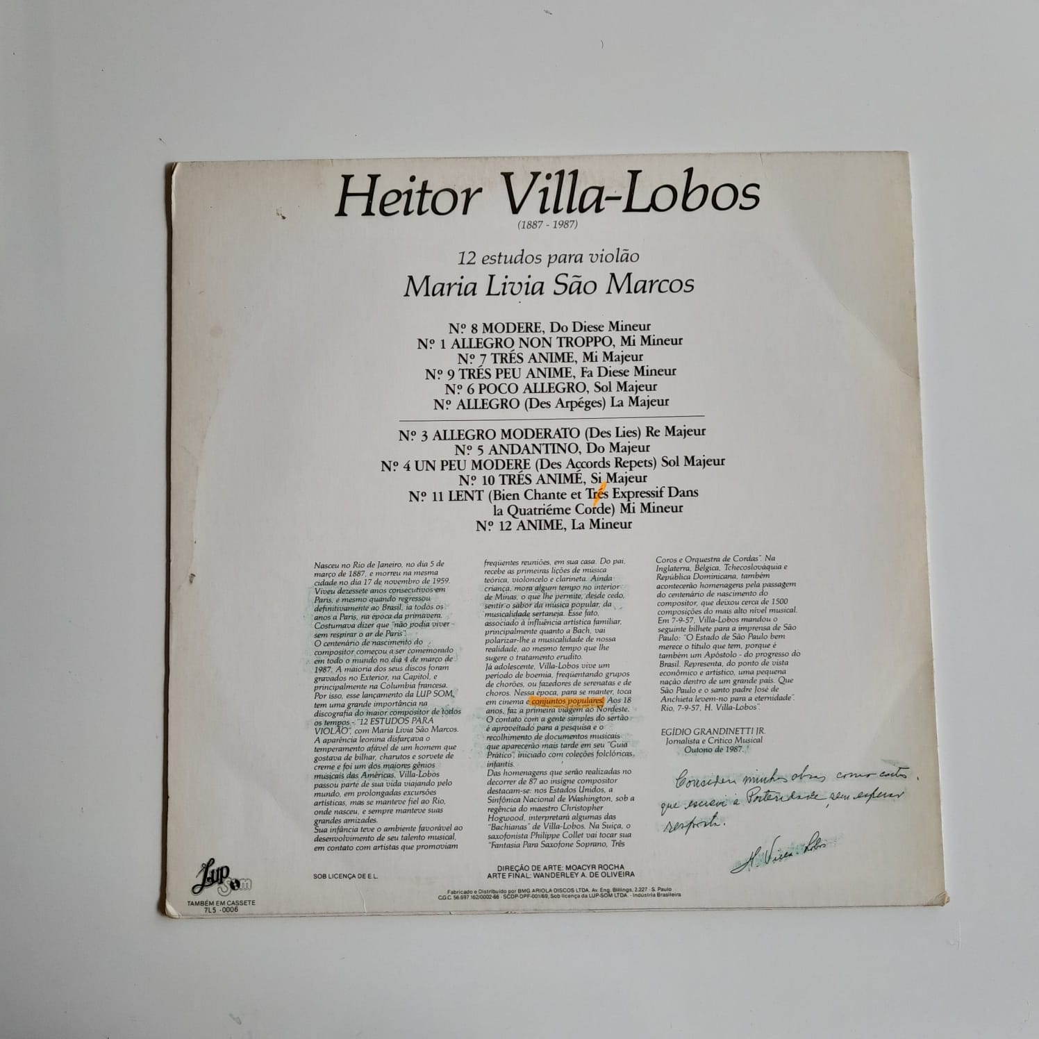 LP Heitor Villa-Lobos, Maria Livia São Marcos – 12 Estudos para Violão