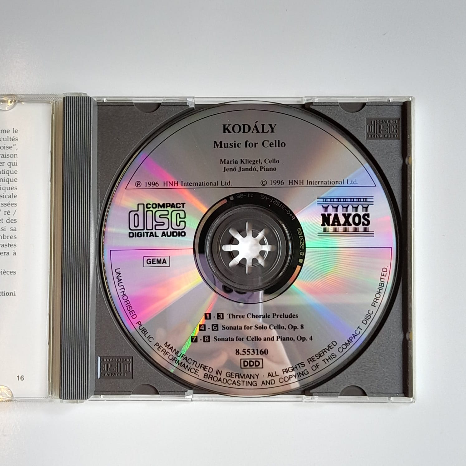 CD Kodály, Maria Kliegel, Jenő Jandó – Music For Cello – Three Chorale Preludes, Cello Sonatas Opp. 4 And 8 – Importado