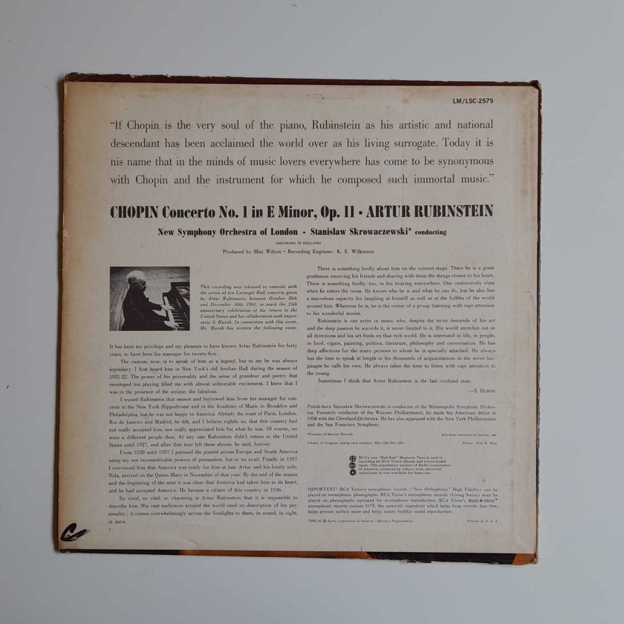 LP Rubinstein / Chopin – Concerto No. 1 – Reg: Stanislaw Skrowaczewski – Importado