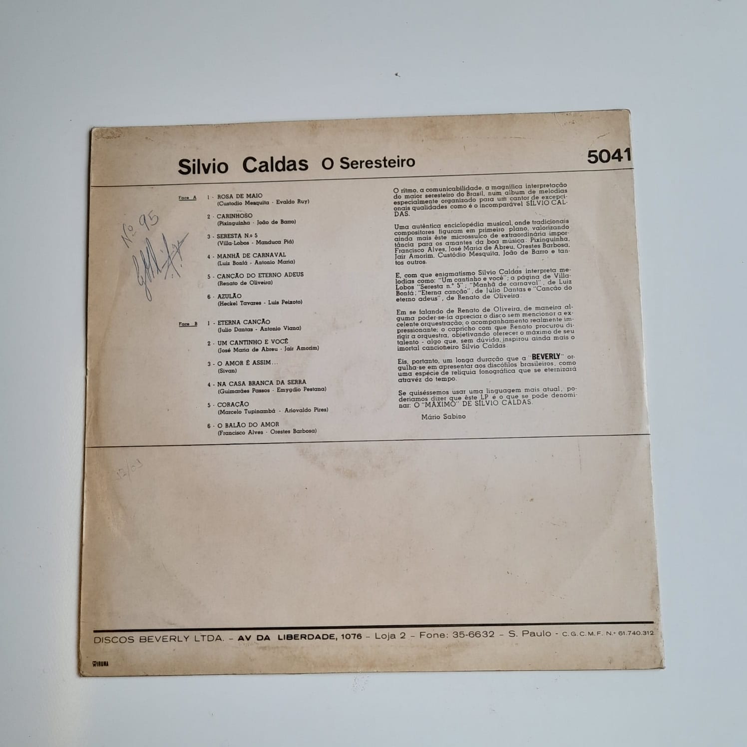 LP em ótimo estado. Dedicatória na contra capa.